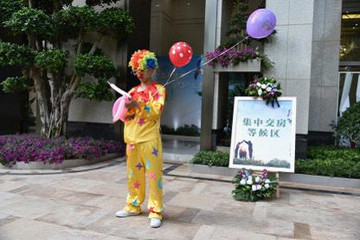 等候區(qū)大門(mén)外小丑為小業(yè)主們編織著可愛(ài)的氣球,冷餐區(qū)擺放著美麗又可口的糕點(diǎn),等待業(yè)主們回家享用。