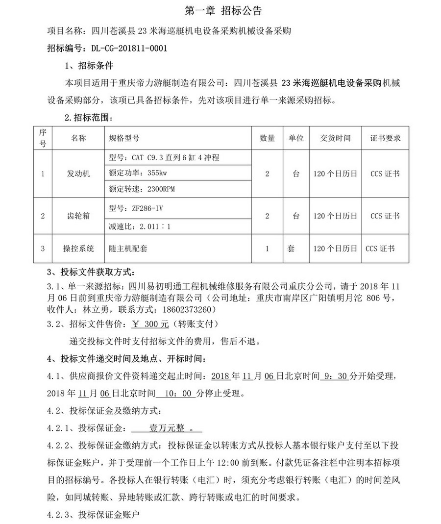 四川蒼溪縣23米海巡艇機(jī)電設(shè)備采購機(jī)械設(shè)備采購