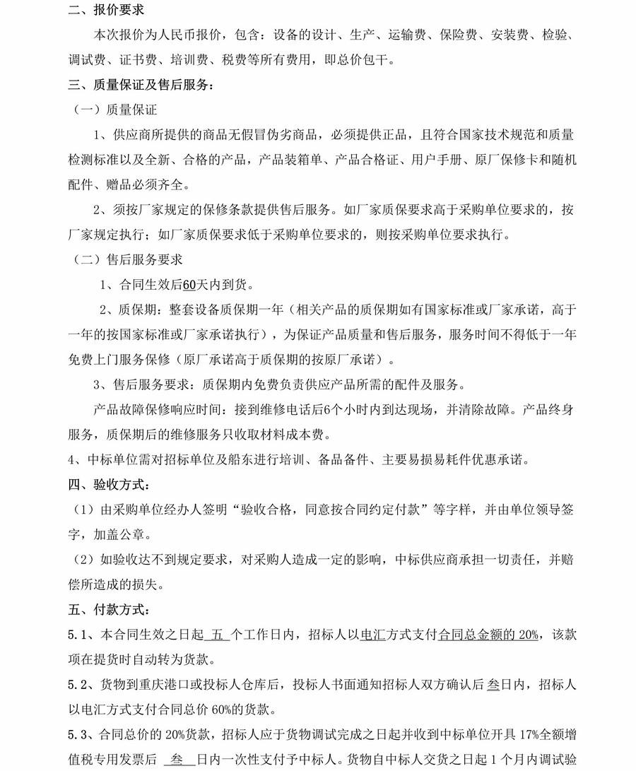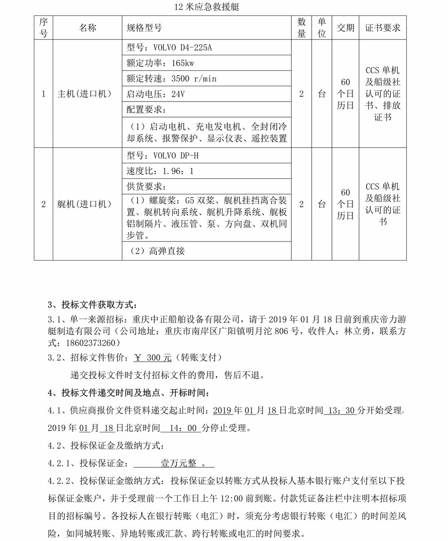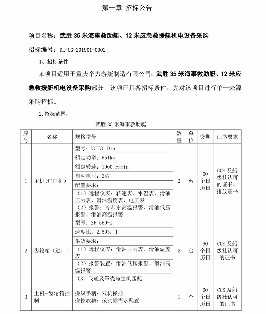 武勝35米海事應(yīng)急救援艇機(jī)電設(shè)備采購