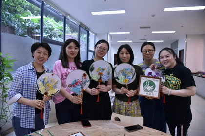 團扇是中國傳統手工藝品,寓意團圓友善、吉祥如意,是女同胞們的最愛。大家充分發揮想象力,用扇面為底,以干花、落葉作畫,經過大家精心構思和巧妙搭配,一朵朵干花在扇面上呈現出來,變成了一份份獨一無二的節日禮物;男同胞們則更多選擇了竹編畫制作,在一根根竹條的一挑一壓間,在指尖竹條的相互纏繞間,一幅幅滿含端午祝福的竹編畫就成型了。