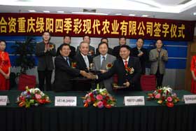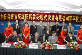 本次簽約儀式由南岸區(qū)人民政府副區(qū)長唐昕主持,共青團(tuán)中央國際項(xiàng)目合作中心、重慶市農(nóng)業(yè)綜合開發(fā)辦公室、市農(nóng)工委、市農(nóng)業(yè)局、共青團(tuán)重慶市委等單位的相關(guān)領(lǐng)導(dǎo),以及中共南岸區(qū)委、區(qū)人大、區(qū)政府、區(qū)政協(xié)主要領(lǐng)導(dǎo)及相關(guān)部門領(lǐng)導(dǎo),洋世達(dá)集團(tuán)公司全體領(lǐng)導(dǎo)參加儀式,共同見證了一個由中日合資組建的現(xiàn)代化農(nóng)業(yè)企業(yè)的誕生。