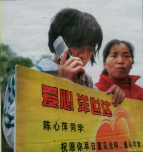 時間就是希望。8日下午,袁副總一行帶著重托,會同長壽區(qū)、鎮(zhèn)相關(guān)領(lǐng)導(dǎo)及《長壽文化》相關(guān)工作人員趕到云集鎮(zhèn)飛龍學(xué)校,將10萬元愛心款交到小心萍家人的手上,并代表公司語重心長地對小心萍叮囑道:“希望這些錢能夠?qū)δ汜t(yī)治眼睛有所幫助,同時希望你能早日康復(fù),回到學(xué)校,繼續(xù)好好讀書,用知識改變自己的命運!”隨后,袁副總還特地撥通了楊總的電話,心萍現(xiàn)場向楊總表達了感恩之情。