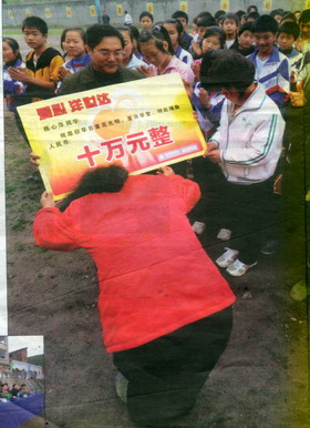 在捐款現(xiàn)場,心萍在媽媽項玉芳的攙扶下,朝著所有幫助她的人們深深地鞠了一躬,“謝謝好心人對我的關(guān)心,我一定積極配合醫(yī)生治療眼睛,早點回到學(xué)校,回到老師同學(xué)們的身邊。”長壽區(qū)教委紀工委劉盛春書記對我司的善舉表示了贊揚與感謝,并勉勵心萍好好學(xué)習,積極治療,將來成為一個對社會有用的人。
